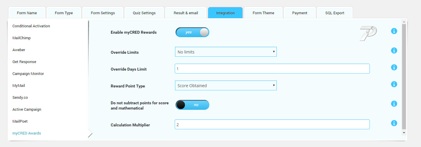 myCRED-Form-Settings Home Activating myCRED reward points mechanism with eForm myCRED-Form-Settings Post navigation « Activating myCRED reward points mechanism with eForm
